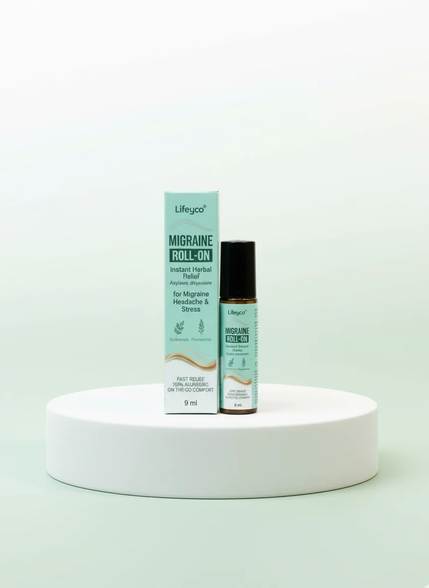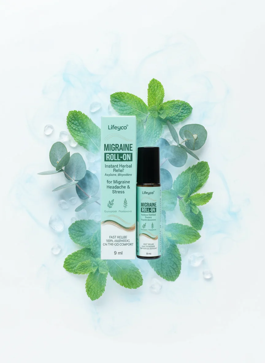 Effective herbal roll-on, perfect for instant migraine relief on the go.